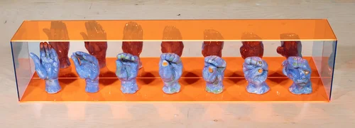 ceramic, acrylic paint, mirrored plexiglass, MDF, 2025